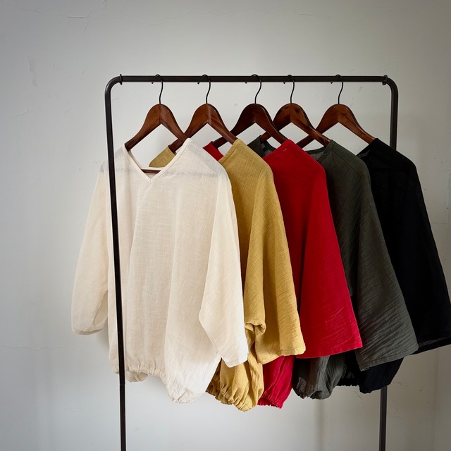 こちらはオーダーではなく即売のお洋服です。 実店舗のお客様が優先されますので、タイミングによっては完売となることもあります。 ご了承くださいませ。 完売後はオーダーを承ります。 *オーダーの場合、お届けまで1-3ヶ月ほどお時間を頂戴いたします。 《 blouse1 》 ふんわりエアリーな着心地のブラウス。 ほどよい大人なシアー感があり春の装いにぴったりです。 さまざまなボトムスに合わせやすく、カジュアルにもフェミニンにも映えるので お仕事の日も、おめかししたい日にも活躍してくれる1着あると安心な存在です。 裾にゴムを入れて絞ったシルエットがかわいく、スタイルを良く見せてくれます。 quality: コットンリネン size: F color: アイボリー / マスタード / レッド / カーキ / ブラック モデル身長 : 159cm *他のカラー、生地、丈の変更等のオーダーは公式LINEでご相談くださいませ。